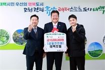 태백시는 태백호텔(대표 이용철)이 지난 9일 관내 저소득 가구 및 소외계층 지원을 위해 성금 1,000만 원을 기부했다고 밝혔다.이용철 대표는 “지역사회와 함께 성장하는 기업으로서 도움이 필요한 취약계층에 작은 힘이 되길 바란다”며 “앞으로도 관내 취약계층에게 실질적인 도움을 드릴 수 있도록 노력하겠다”고 말했다.이번에