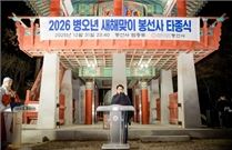 진접읍 봉선사에서 2026년 희망 가득한 새해를 기원하는 제야의 종소리가 울려 퍼졌다.남양주시의회(의장 조성대)는 31일 진접읍에 위치한 대한불교조계종 제25교구 봉선사(주지 호산스님)에서 열린‘2026년 봉선사 새해맞이 타종식’에 참석해 시민들과 함께 병오년(丙午年) 새해의 힘찬 출발을 함께했다.봉선사가 주관한 이날