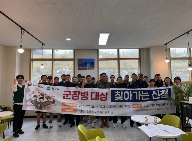 원주시는 9월 30일부터 10월 1일 이틀간 군 장병 대상 “찾아가는 신청”을 접수받기 위해 항공사제71항공정비대대, 1군지사 2곳을 방문했다.