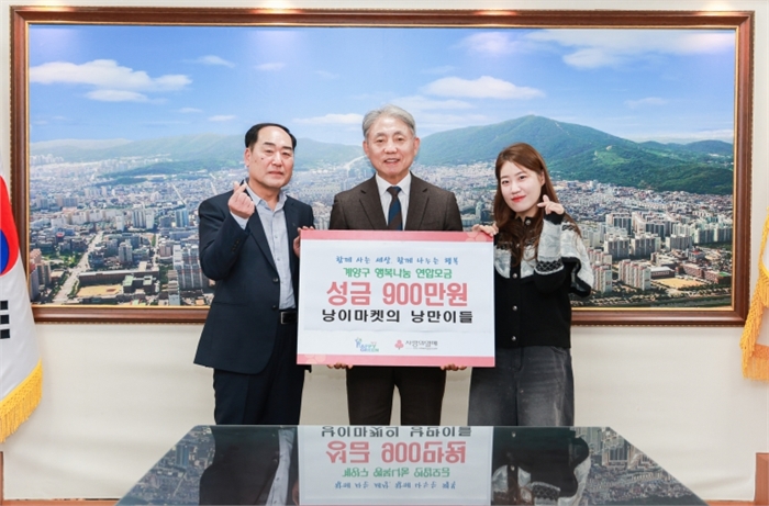 인천광역시 계양구는 낭이마켓(대표 정수미)이 지역 내 취약계층 지원을 위해 성금 900만 원을 기탁했다고 밝혔다.